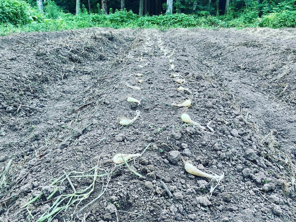 ちょっと幅が狭めのウネを作ってずらっと並べて片っ端から植えていくという単純作業なのですが、最近の猛暑のおかげで、作業できるのが夕方の短い時間だけだったので、思ったより時間がかかってしまいました。。