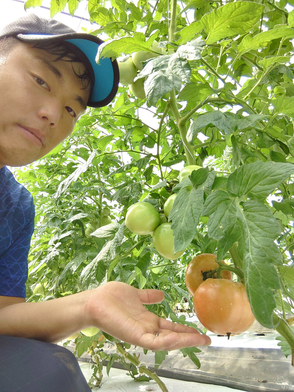 私達は上に引きますが、生産者によってはトマトの後ろにネットなどをはって斜めに誘導したりします。生産者によって使う資材や仕立て方は様々です。
