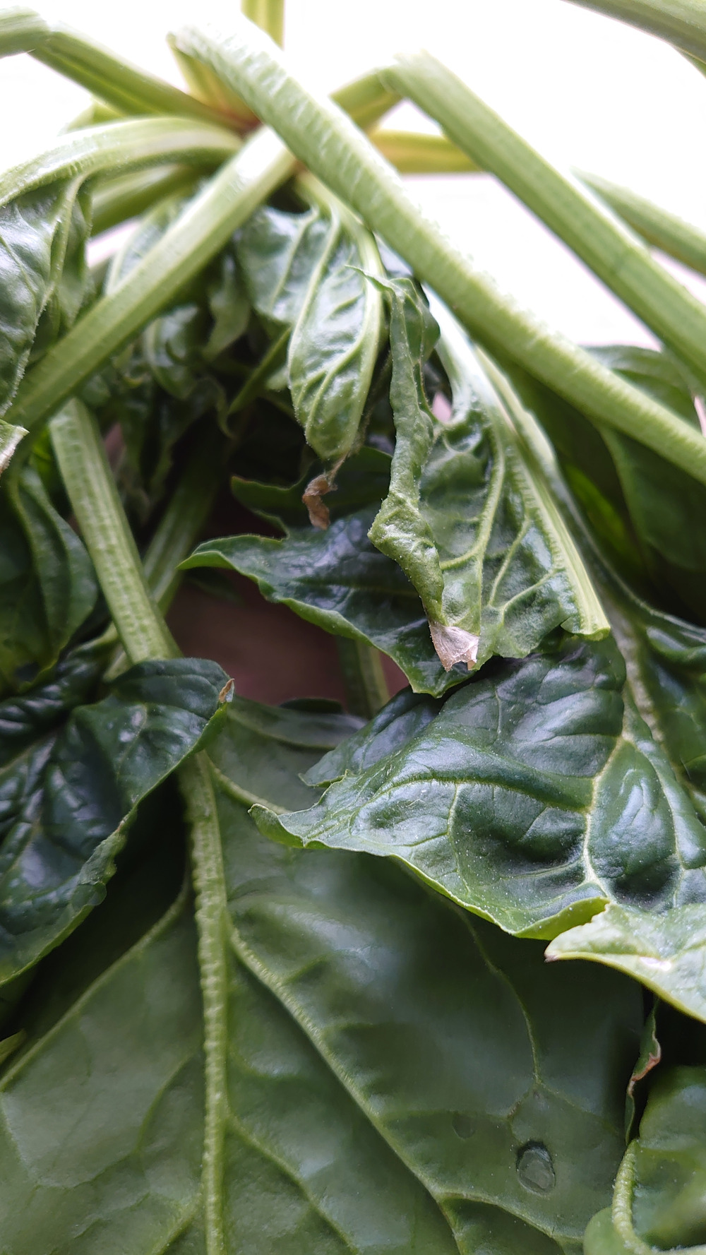 ほうれん草の葉先が少し傷んでいる場合がございます。食味や品質には支障はありません。露地栽培です。ご容赦頂けたら幸いです。