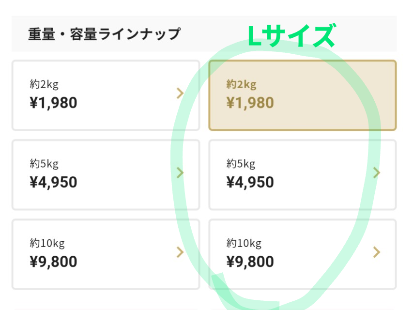 同じ商品グループの中にLサイズもご用意しておりますので、大きめをご希望の方は、「重量・容量ラインナップ」からLサイズもご検討下さいませ!