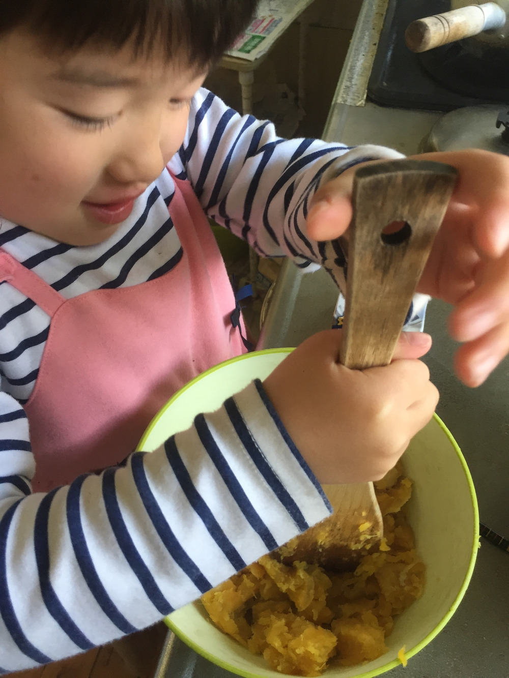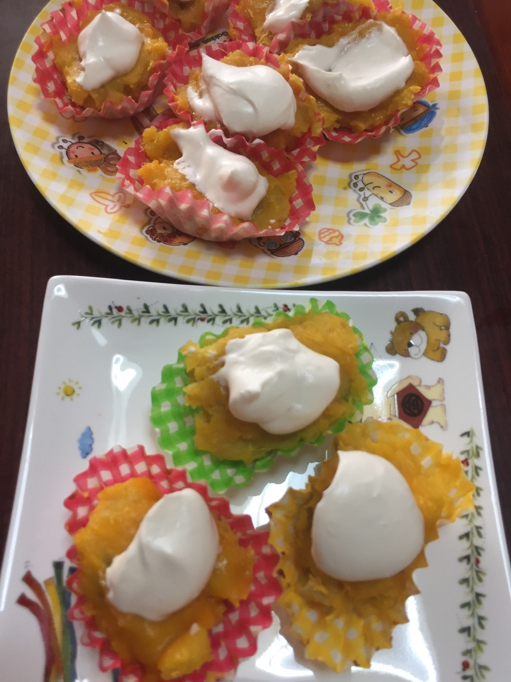 安納芋を蒸して潰してラップで茶巾絞りにするだけ!海苔でギザギザのお口をつくって貼るだけで、ハロウィンメニューが1品できます✨お弁当にもオススメ🎃