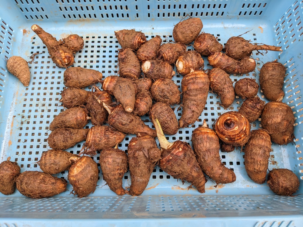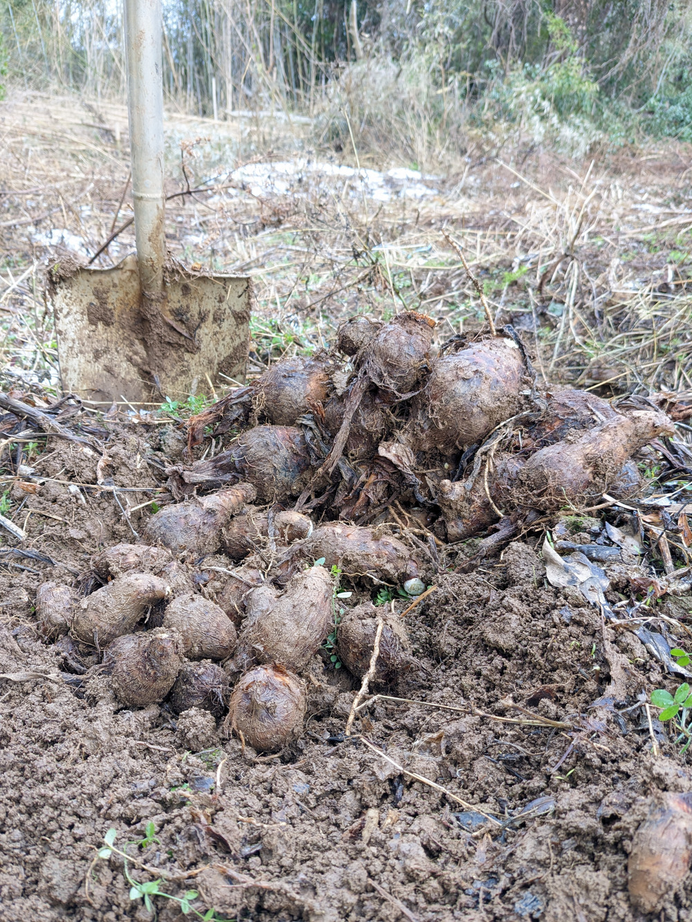今日は雪が融けてきたので、朝から里芋の掘り取りをしました。