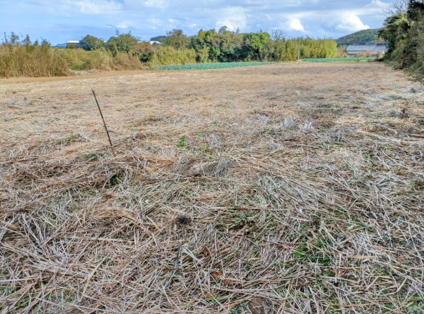 2枚目の写真は、安納芋が終わった畑に茅を敷き詰め ております。