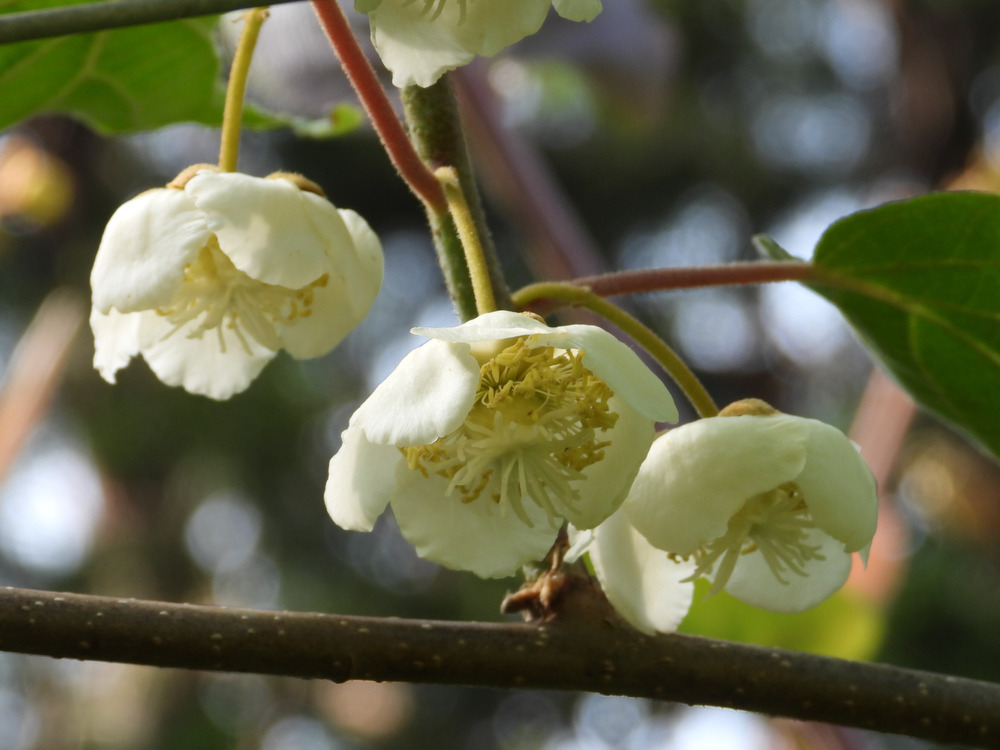 キウイの花はこんなにキレイで香り豊かなんですね!上を向いての受粉作業のおかげで大きなキウイを頂けることが良く分かり感謝です