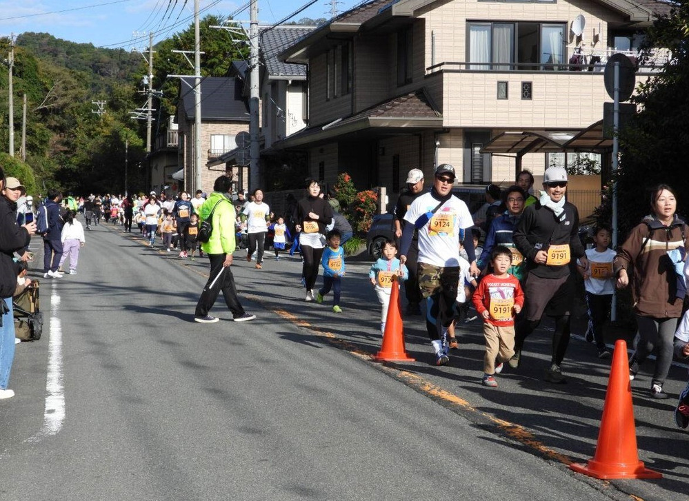 幼児から高齢者までが参加し、距離も1,3,5,10,20Kと色々な部門に参加でき、20Kは、私の住む地域(海抜180Mくらい)富士市木島の室野区まで来て折り返していきます。