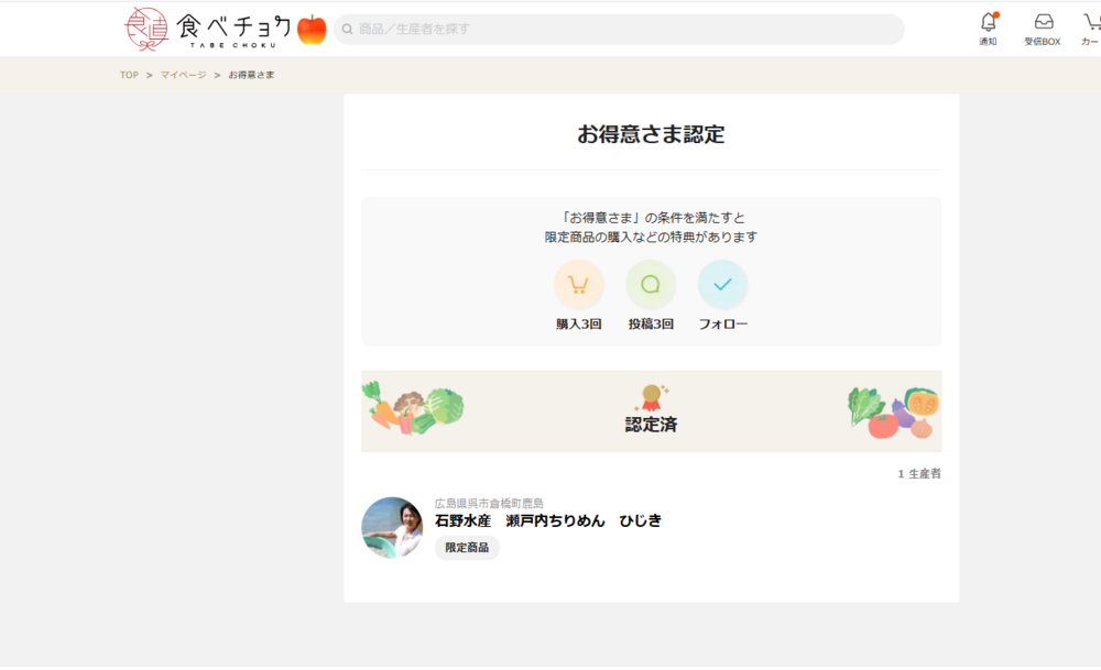お得意様認定の個所を開いてもらうと