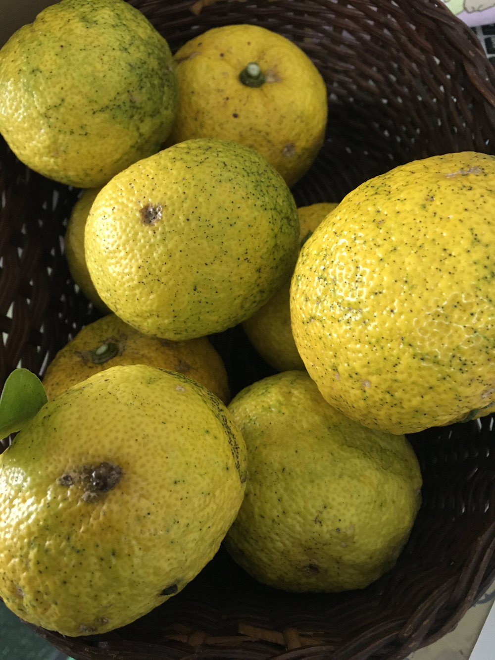 【柚子写真はきれいですが、傷も多いし、黒い点点もよく見るとあるのですが)