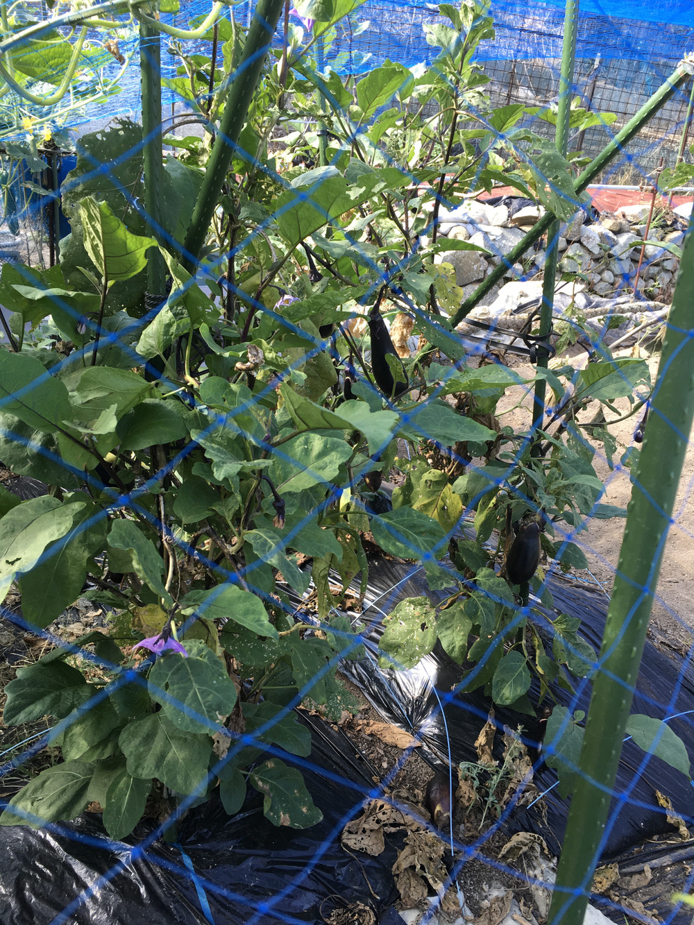 ナス、ピーマン、キュウリなどが育っており