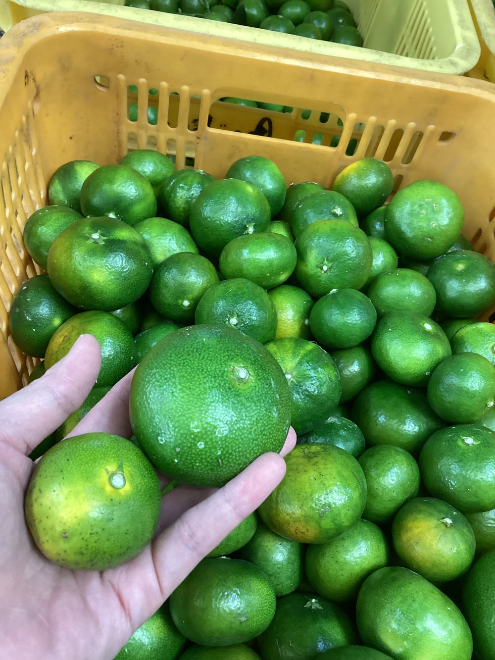 この時期は緑のこの極早生(極早生みかん)甘酸っぱいです