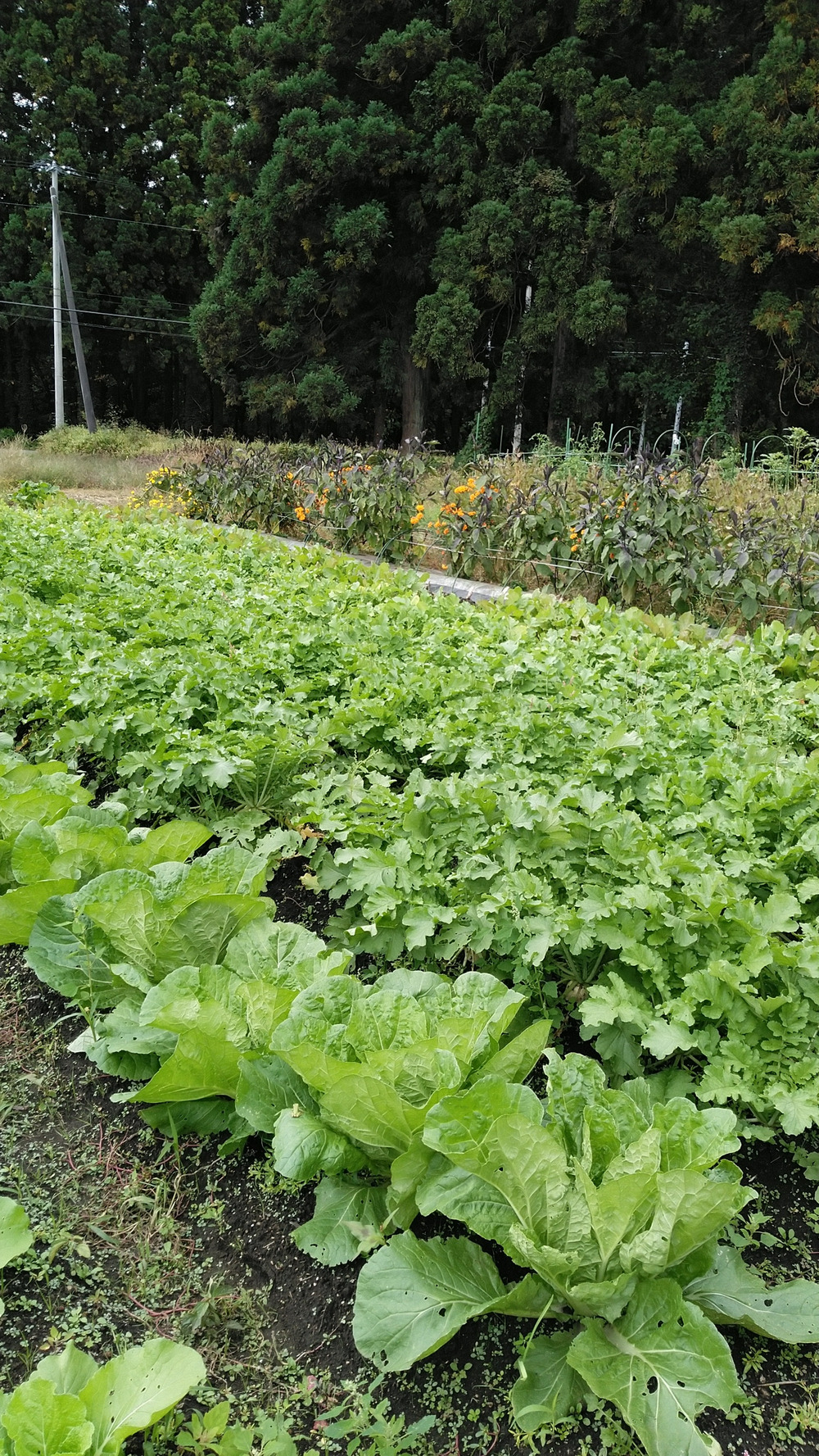 大根や白菜 にんにく、在来種 南沢カブなどおつけものに使う野菜たちが、すくすくと成長しております。