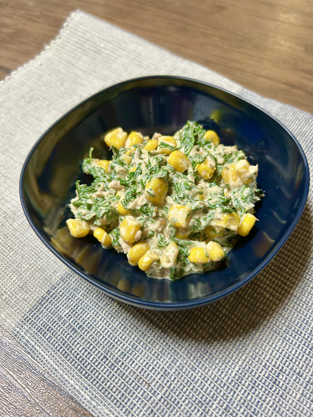 写真はニンジンの葉とツナとコーンのサラダです✨