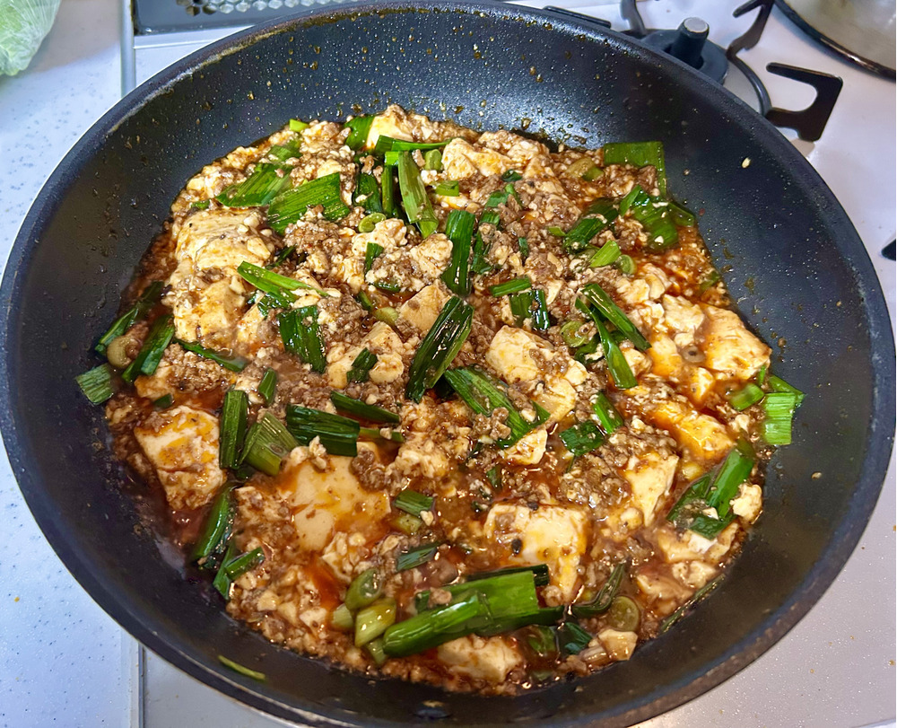 いつもの麻婆豆腐に葉ニンニクを足しただけなのにお店クオリティに✨(個人の感想です笑)
