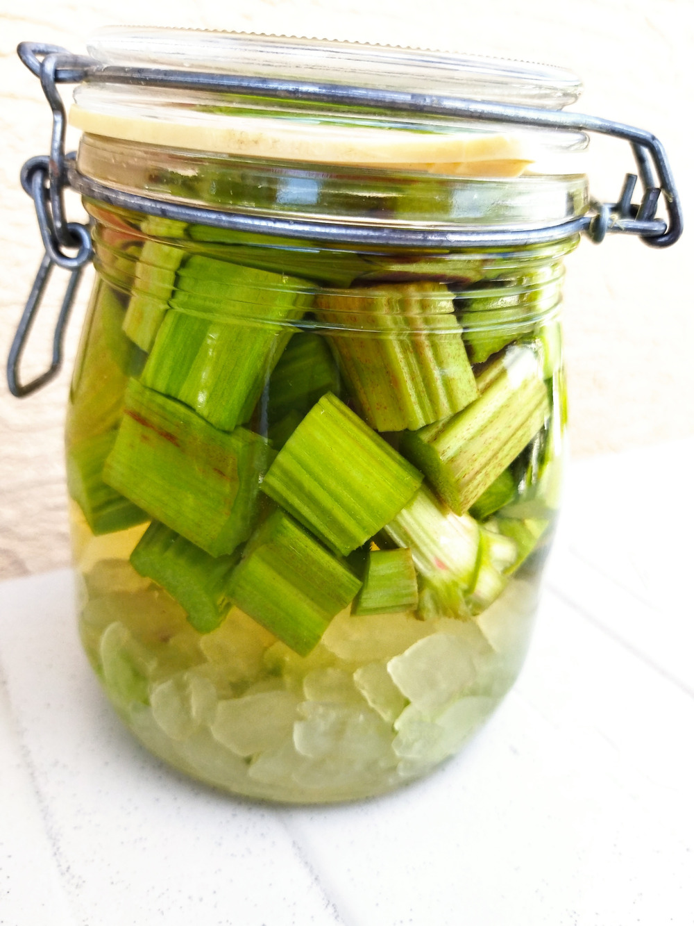 氷砂糖とルバーブを交互に詰めて、お酢を注ぐだけなので簡単でした。