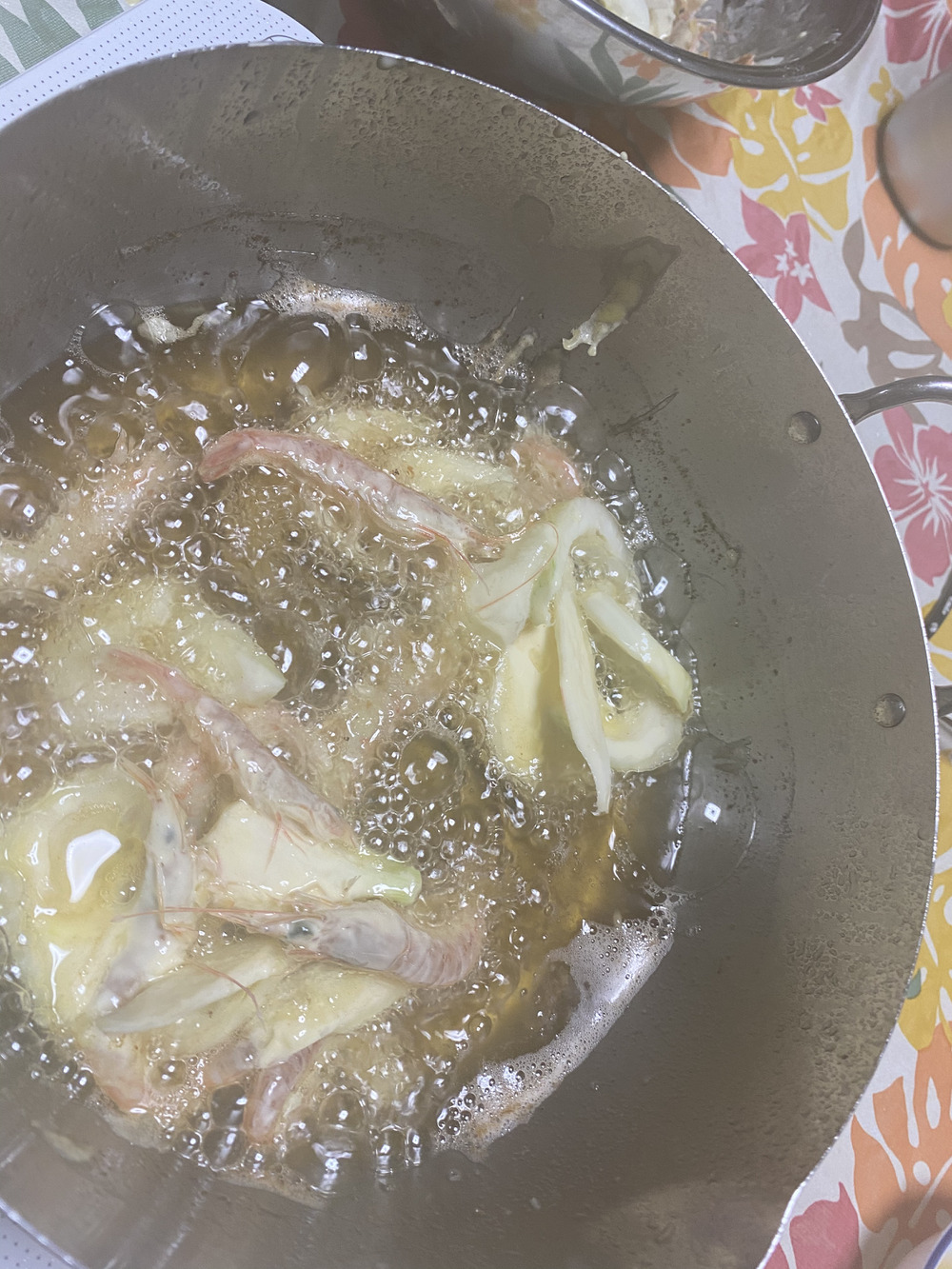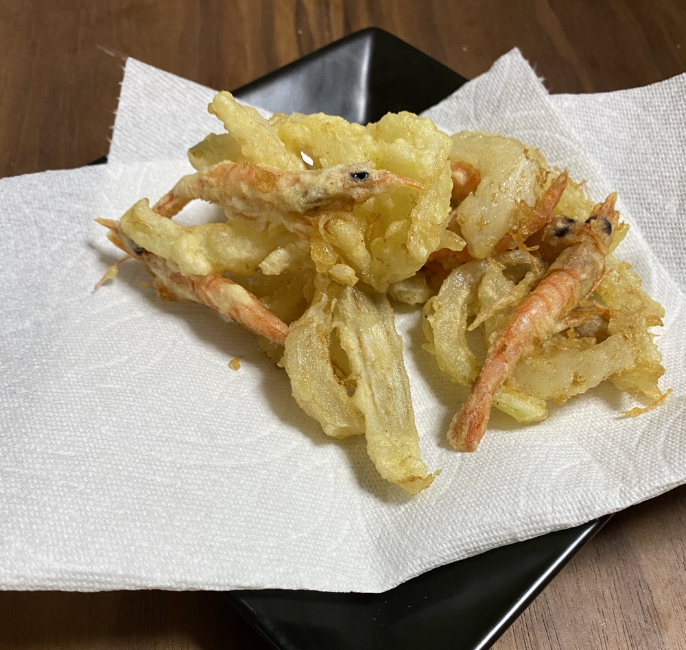 海老が刺身でもいけるものだったので、サッと揚げたら玉ねぎもレア状態で甘みと食感のバランスが良かったです。