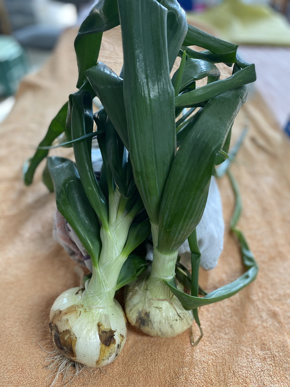 ここのところの雨不足と寒さで 少し成長が遅れた新玉ねぎですが、こんなになりました‼️(^^)
