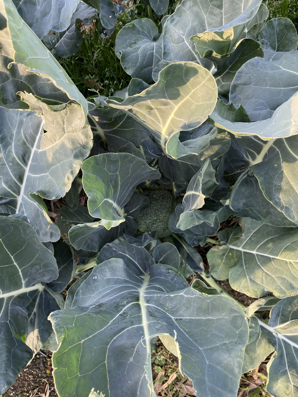 ブロッコリー 袋詰めしてお届けするときは あの大きさですが 畑にいるときはとっても大きいのです。真ん中にある実部分だけを取り出してお送りしています。不思議な作物です。