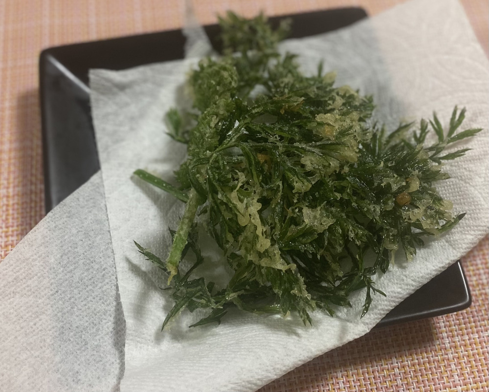 お勧めは 葉の天ぷら ふわふわサクサクカラッと歯触りもいいです。実はサラダに 残りの葉はこれも細かく切ってごま油で炒めて 砂糖醤油で味付け鰹節も入れて卵とじに 根菜類のかき揚げにもにんじんを入れています。