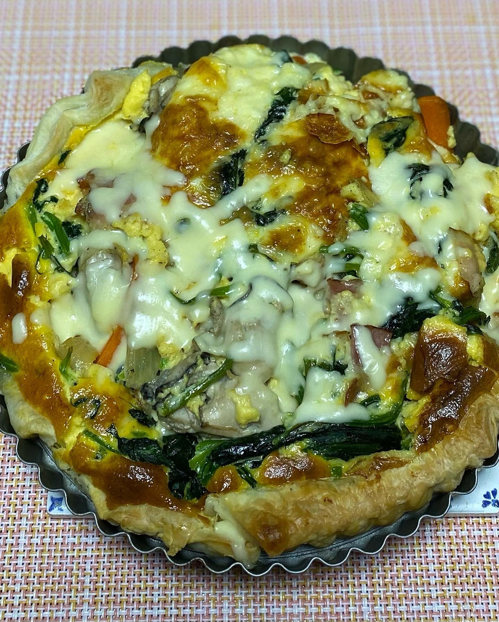 ほうれん草が甘くておいしい。ちょっと大きめですが 柔らかいのです。ほうれん草 玉ねぎ にんじん牡蠣でキッシュを作りました。冷凍パイシートを使うので 簡単 卵液も生クリーム100ccと卵2個とチーズをサッサと混ぜるだけ オーブンで焼きあげました。