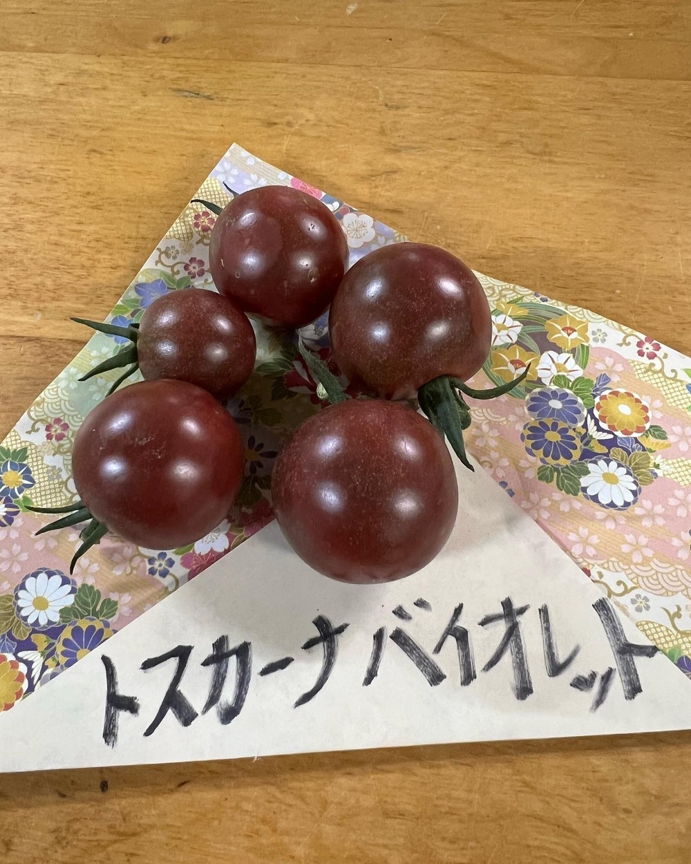 ミニトマトトスカーナバイオレットは ちょっと色が紫ぽい感じ