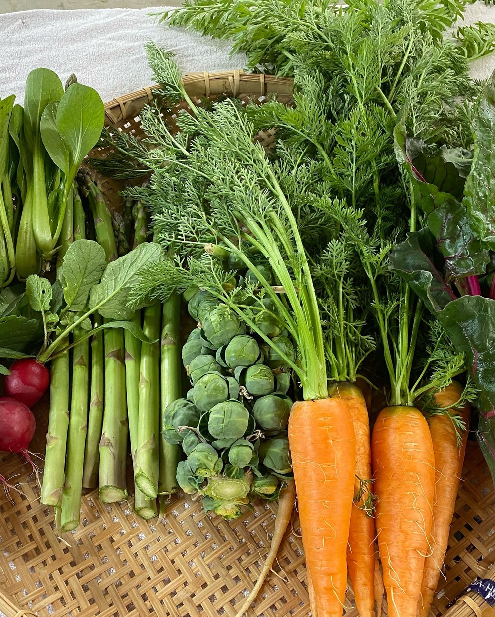 などは ずーっとお出ししますが 冬の野菜がもうおしまいになり 続いて 葉付きにんじんやラデッシュ アスパラガスなどの野菜が出てきています。豆類や 春大根 サラダかぶらラティーナなどももうすぐです。