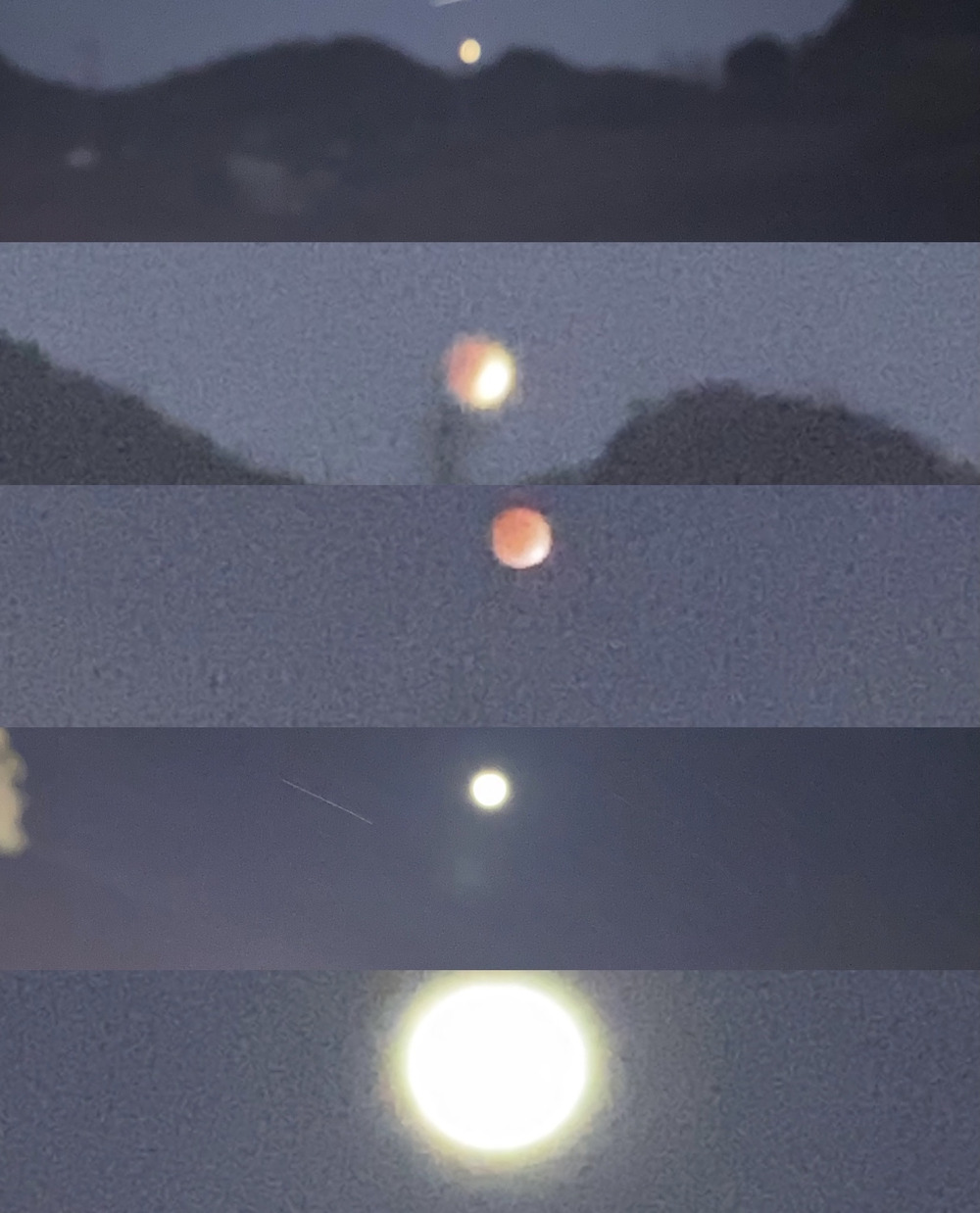 午後5時過ぎからずーっとお月様を見てました。でも家から見えたのは5時半過ぎ それから刻々とお月様が欠けてきて6時過ぎがピーク その後段々と元に戻り 8時前には綺麗な満月 今8時半には高い場所で綺麗に光っています。自然は不思議で素敵!心もゆったりでした。