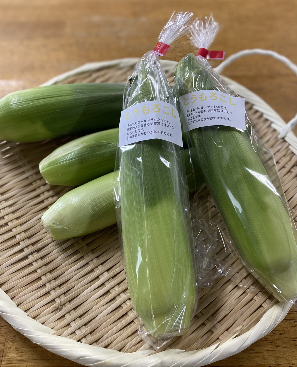 とうもろこしお出しできるようになりました。少し 小ぶりですが 味はしっかり甘いです。今日の発送にもお入れさせていただきました。