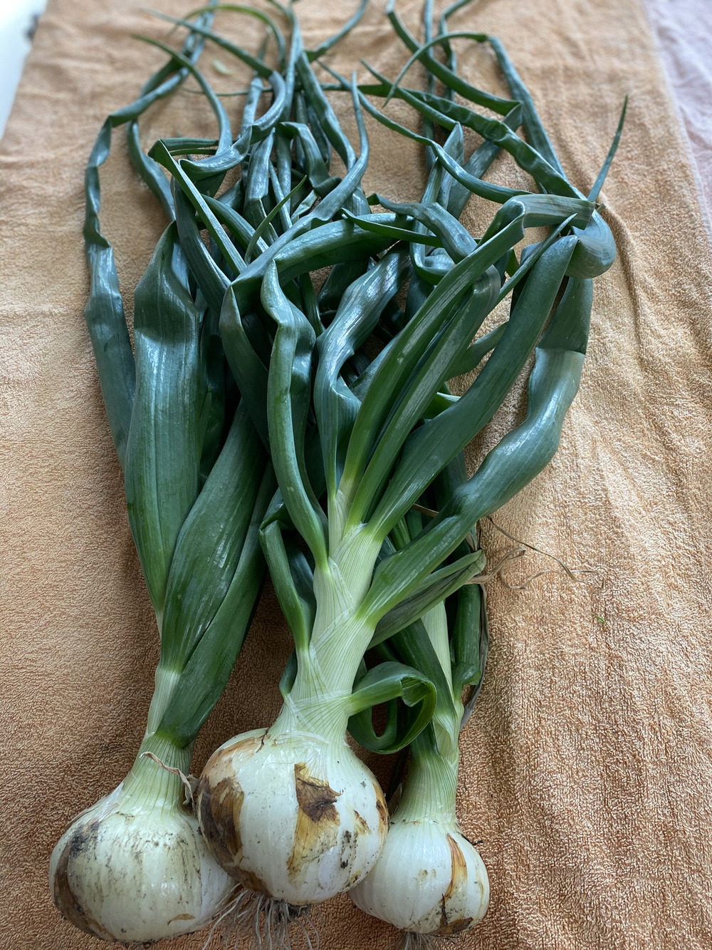 ここのところの雨不足と寒さで 少し成長が遅れた新玉ねぎですが、こんなになりました‼️(^^)