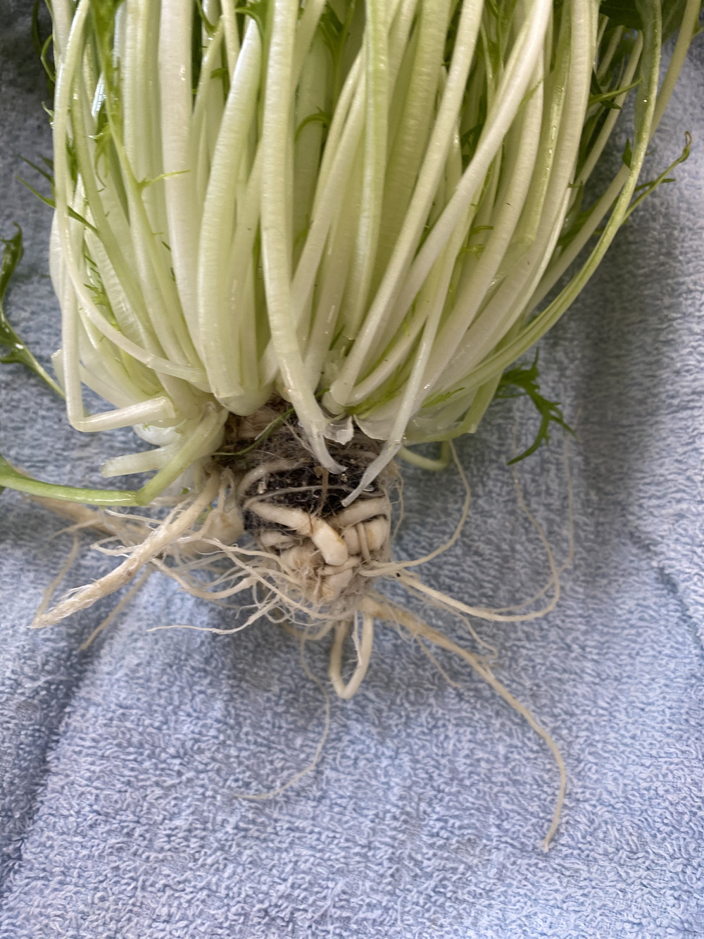 今日初めて 水菜をお送りしました。水菜はシャキシャキおいしいのですが、このシャキシャキをどうしたらお届けできるだろうかと一生懸命考えました。ほっこりファームの野菜はスーパーの野菜と違って できるだけそのままの姿でお送りしたいといつも思っています。そこで 根っこのままがいいのですが なんと水菜の根っこは とっても複雑なのです。でこんな感じにしました。シャキシャキで届きますように!^_^