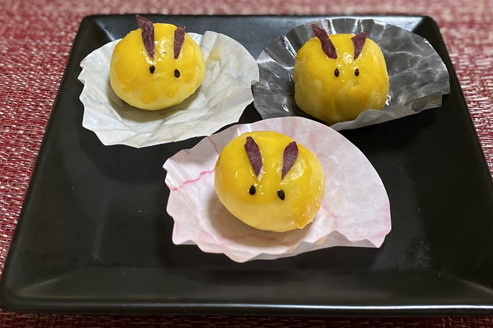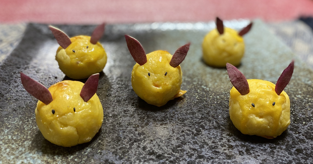 おともだちにさつま芋の試食をお願いしたところ こんなにかわいい うさぎちゃんのスィートポテトになって帰ってきました。びっくり‼️
