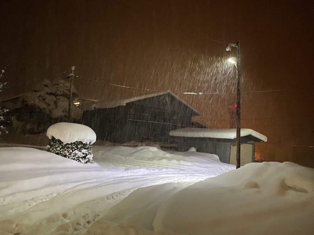 一日中降って今もまだ降り続いてます!
