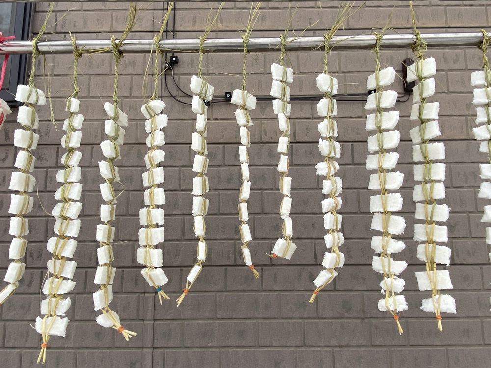 朝晩は冷えるので、凍みてはとけを繰り返してカラカラになったら完成です!