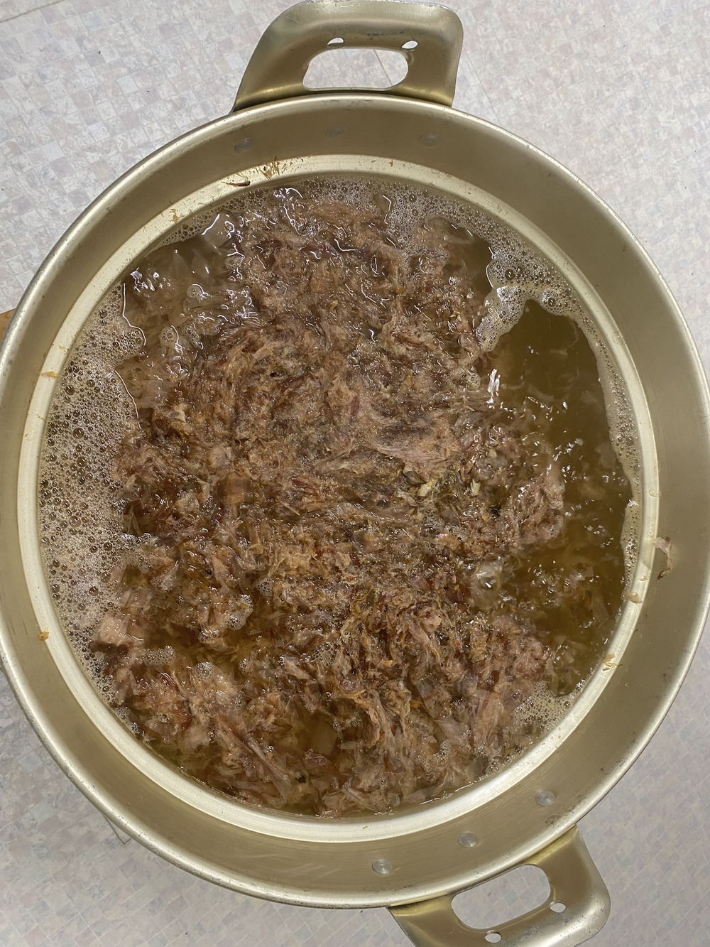 20リットルの水に昆布を入れて沸騰前に取り出して、その後、削り節を投入。そのご鰹節を投入!