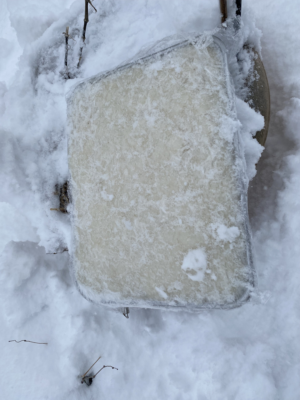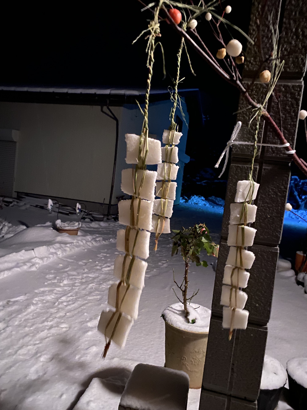 一昨日の夜に凍み餅の下拵え、昨日1日では凍りませんでしたが本日真冬日だったので、凍った!と思いきや、半凍り😅