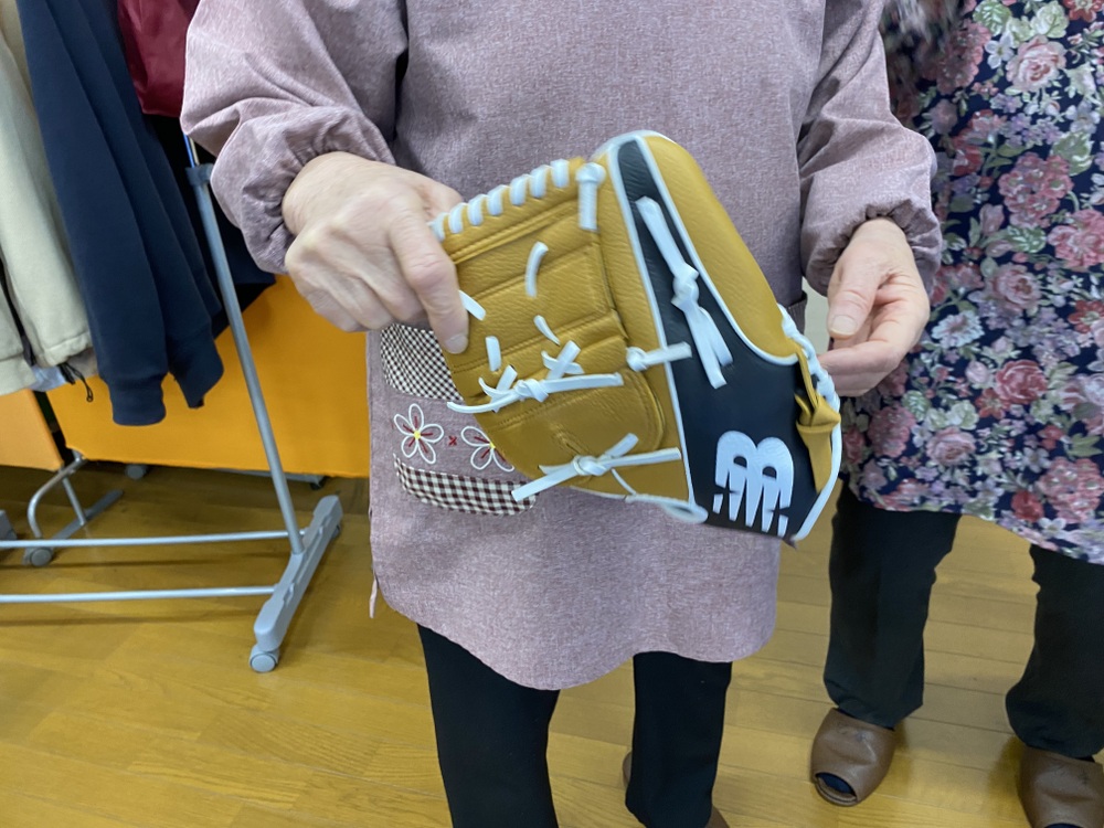 高齢者教室の希望で、学校にお願いしてグローブを見せてもらいました!
