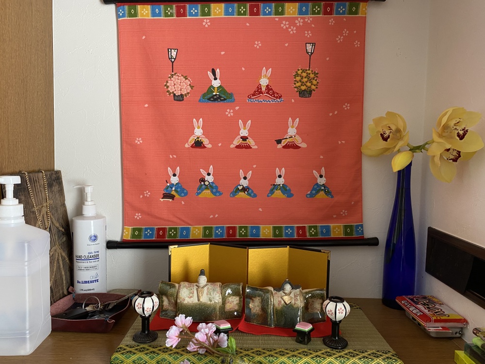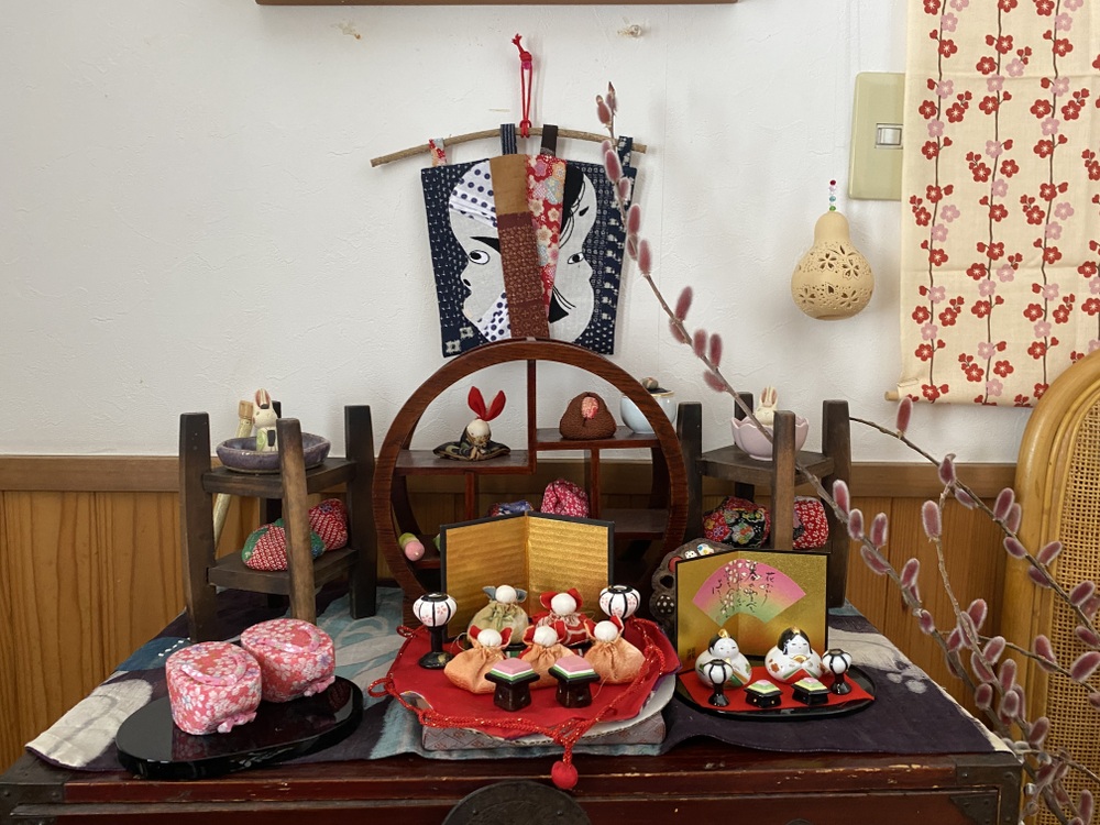 ので、手作りのお雛様を玄関にかざってひな祭りです!