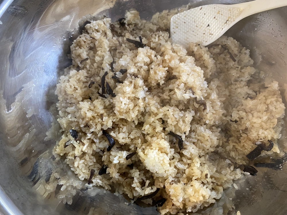 昨年秋に友人から頂き、乾燥させていたものをもどして炊き蒸しを作りました!