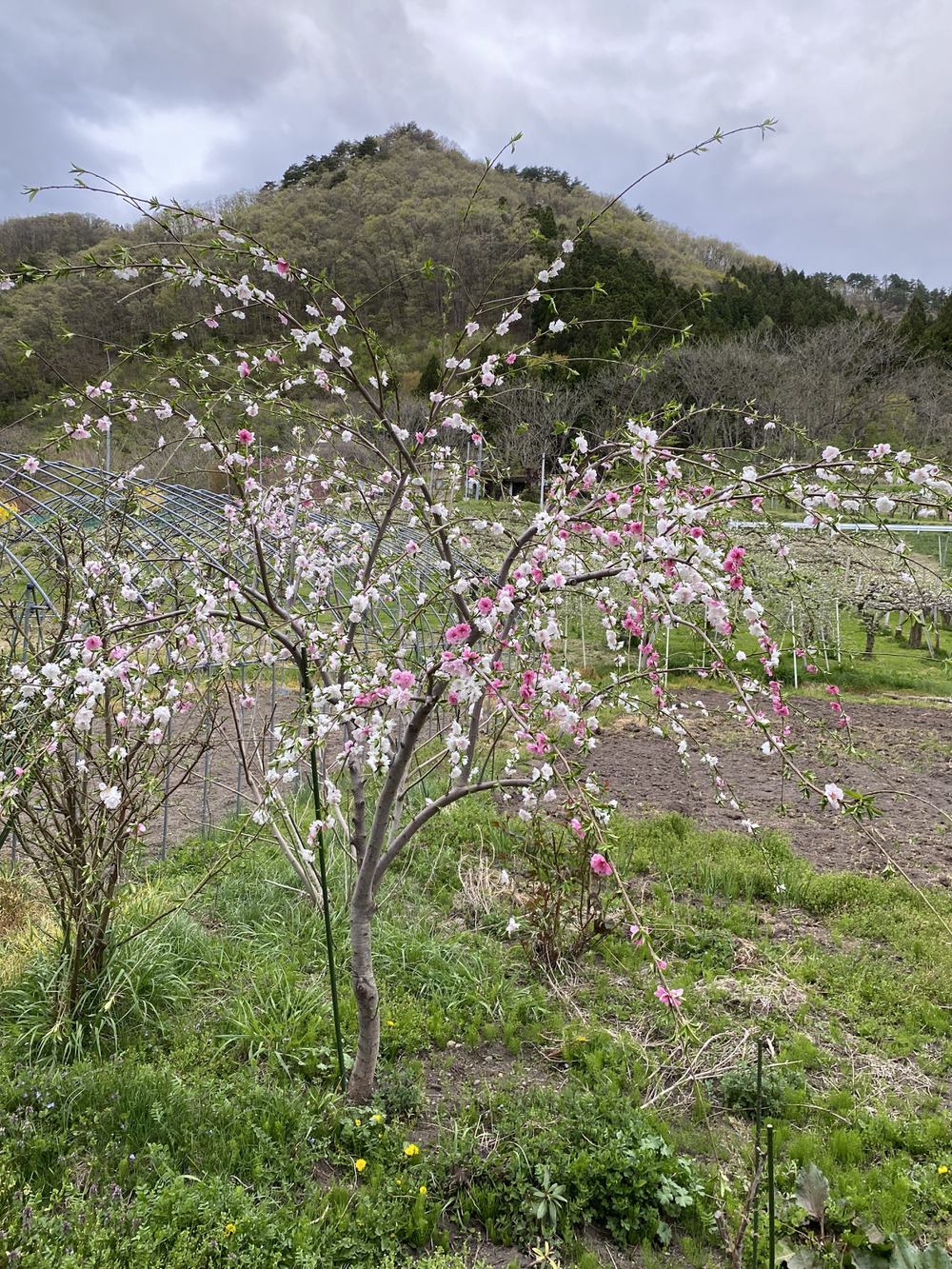 ラフランスの花摘み作業をしていると、車の往来がはげしく、きっと山菜とりに山へ!私も行きたい〜!