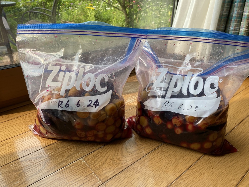 昨日もぐずついた天気でしたが、赤紫蘇を収穫して下漬けした梅の間に赤紫蘇をいれました!