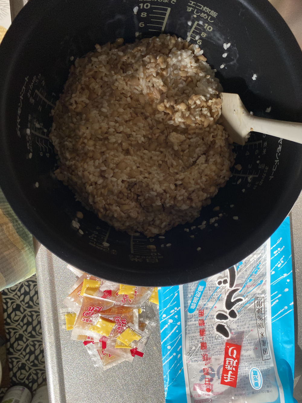 それを、麹と挽き割り納豆を炊飯器で3時間保温して作るレシピを従姉妹にもらって挑戦してみました。
