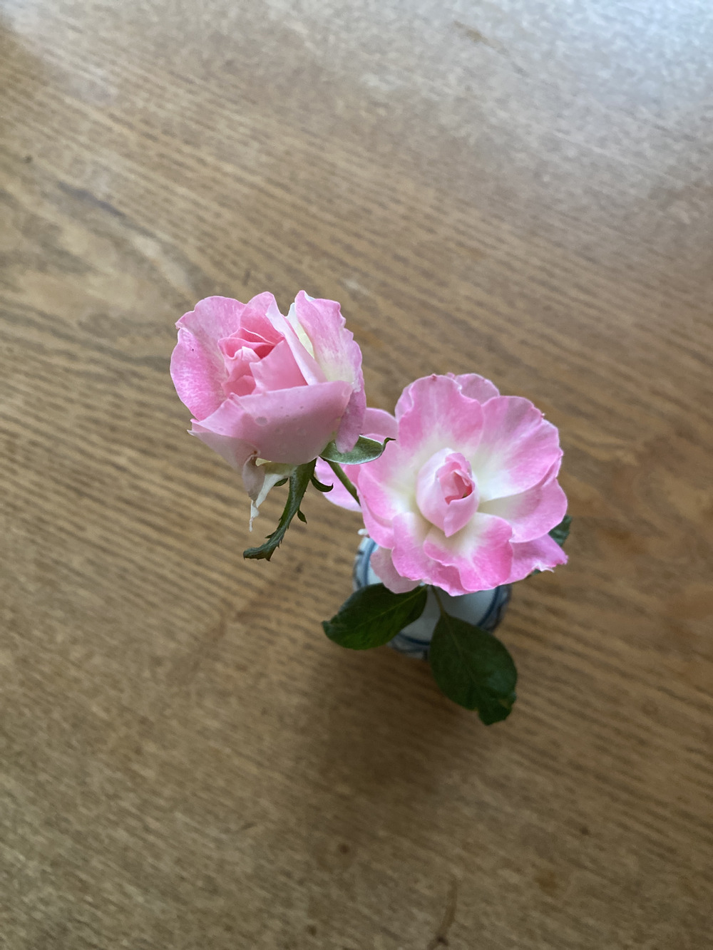 一輪挿しに薔薇を飾ろうと庭に出て、切っていたらバランスを崩してその場で尻もち😅