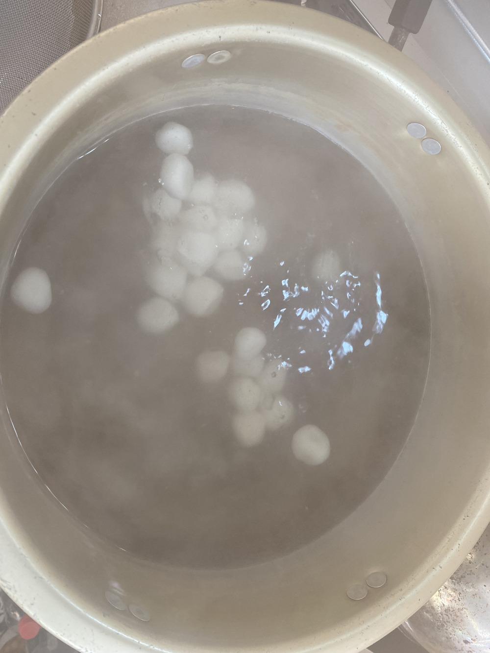 団子のコナだけで刺すと乾燥して割れてしまうので砂糖をいれて丸めてゆでます!