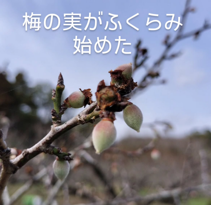 梅の実が膨らみ始めた