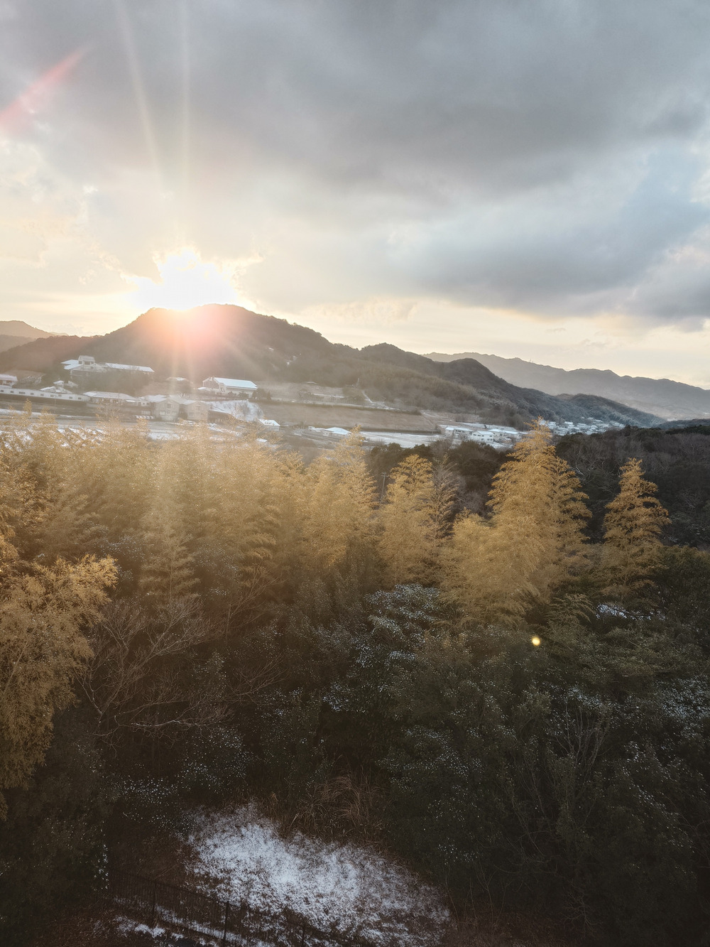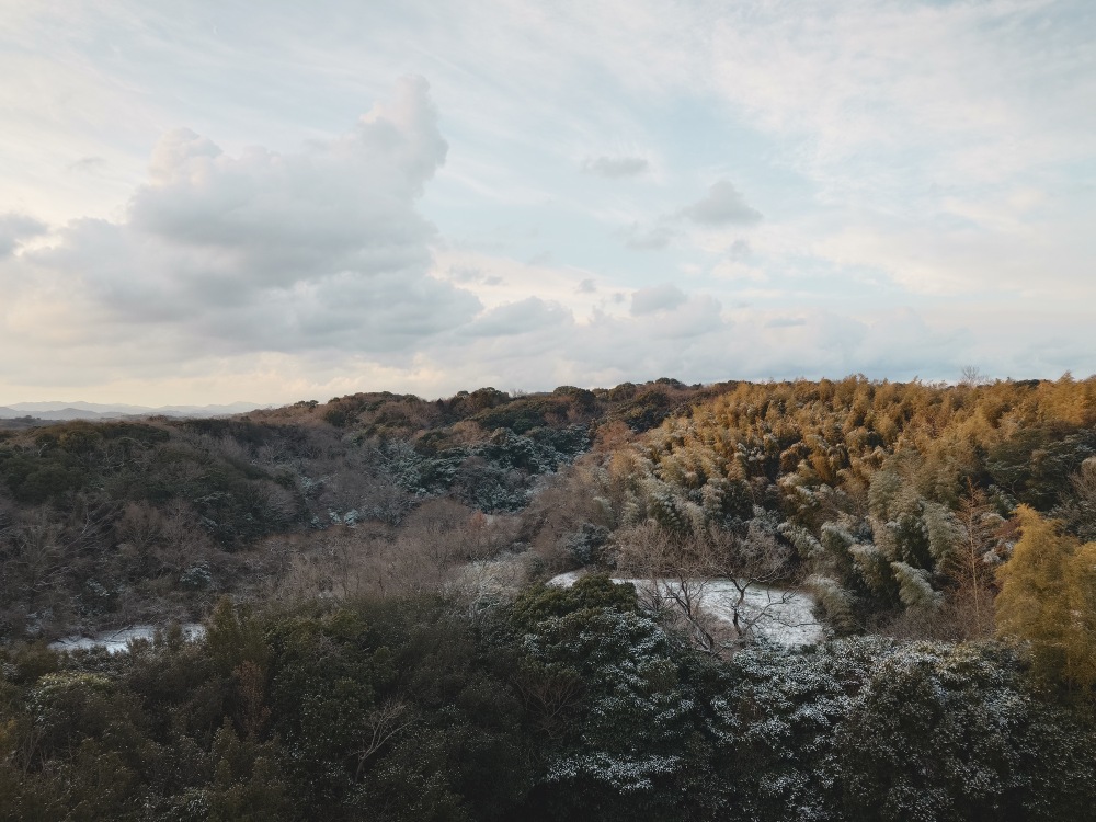 こんにちは、淡路島は雪、子供が初めて雪だるまを作り、喜んでいます。
