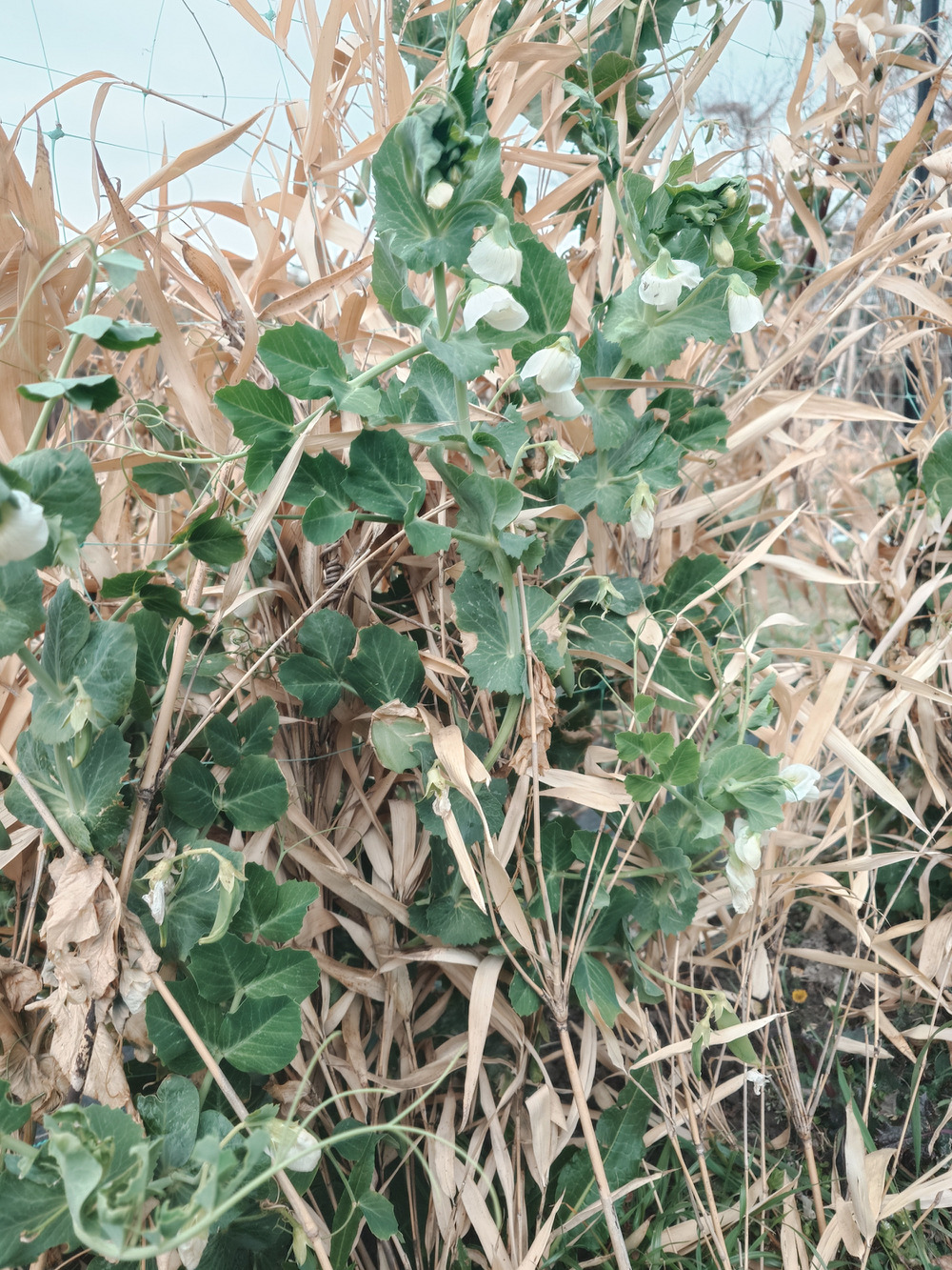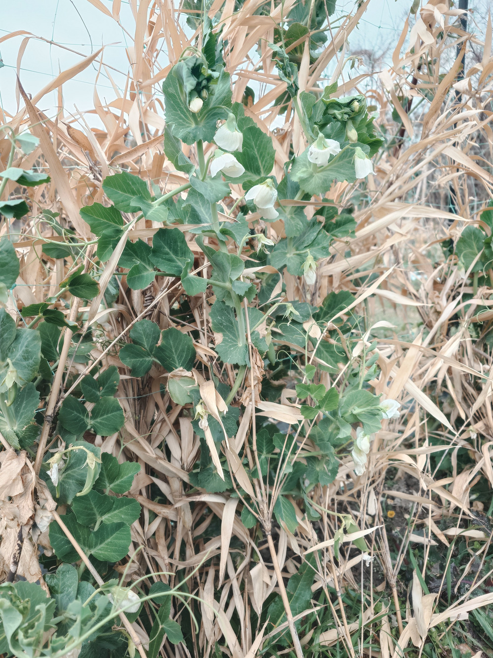 自然栽培スナップエンドウ豆固定種だんだん成長しています。