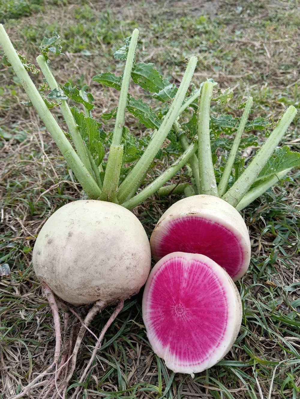 自然栽培固定種大根、紅芯大根、里芋等の仲間入り