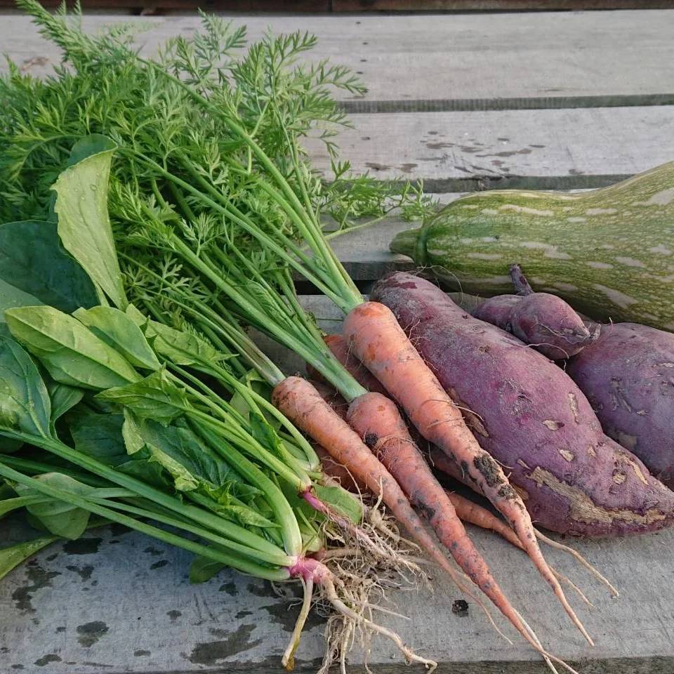 かぼちゃ にんじん葉付き さつまいも カラードグリーンや、その日に収穫を迎えたお野菜です。よろしくお願いいたします。