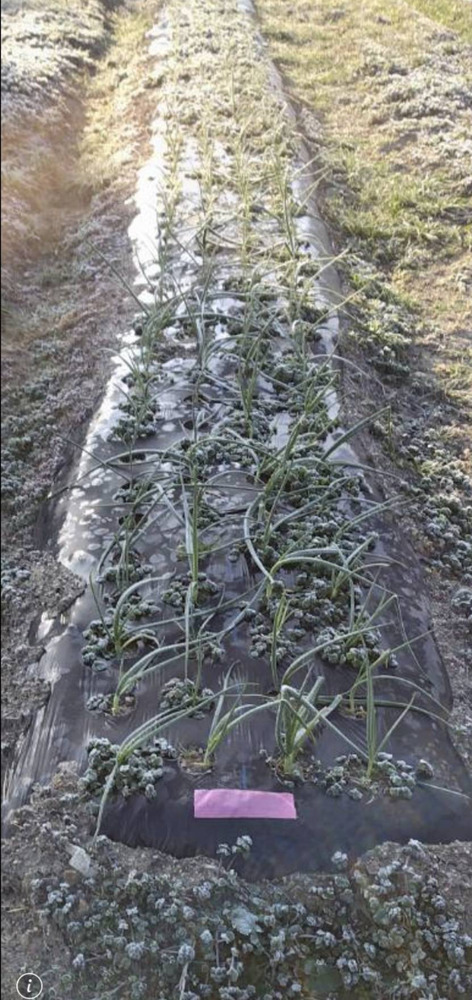 こちらの画像は、朝はやくの玉ねぎ畝の様子です。