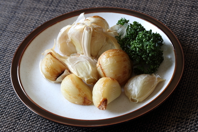 皮に包まれているので蒸し焼きのようにやさしく火が通り、にんにくの甘みを引き出すことができるんです
