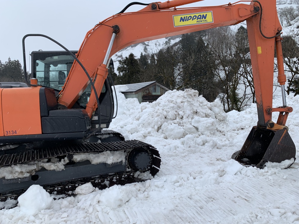 昨年同様、ユンボで除雪を始めました。