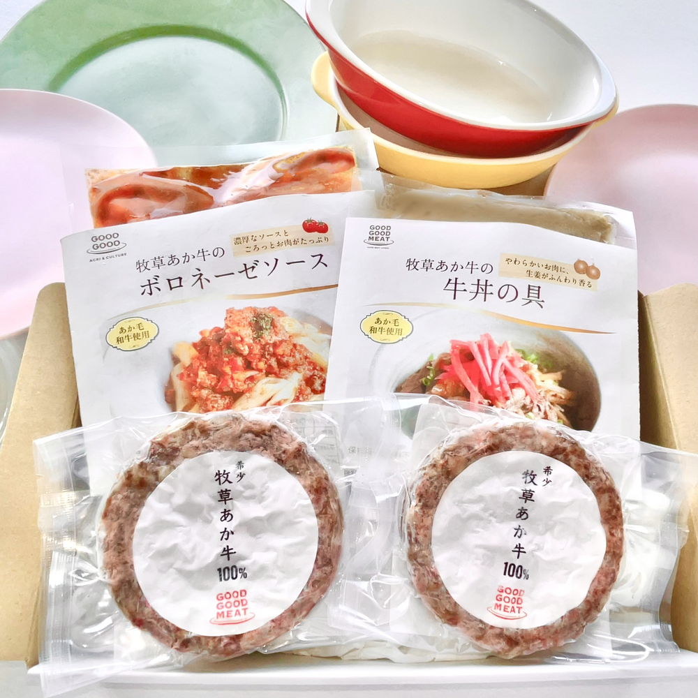 憂鬱な梅雨、外に出たくない気温。そんな暑い夏でもおウチで簡単に食べられる阿蘇赤身和牛を使用した「ごはんがもっと美味しくなる~GOODGOODMEAT特製~牧草あか牛のお惣菜セット」をご用意しました!!